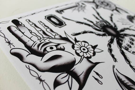 Halloween Tattoo Flash Print 11 X 14 Inches Etsy